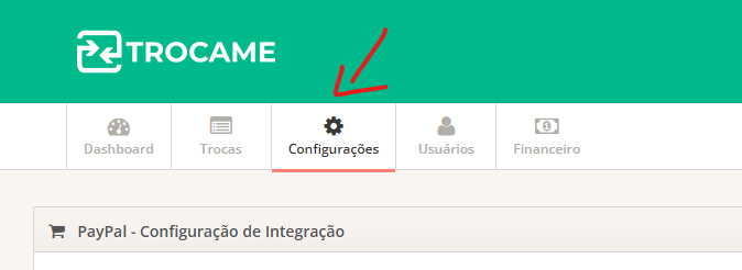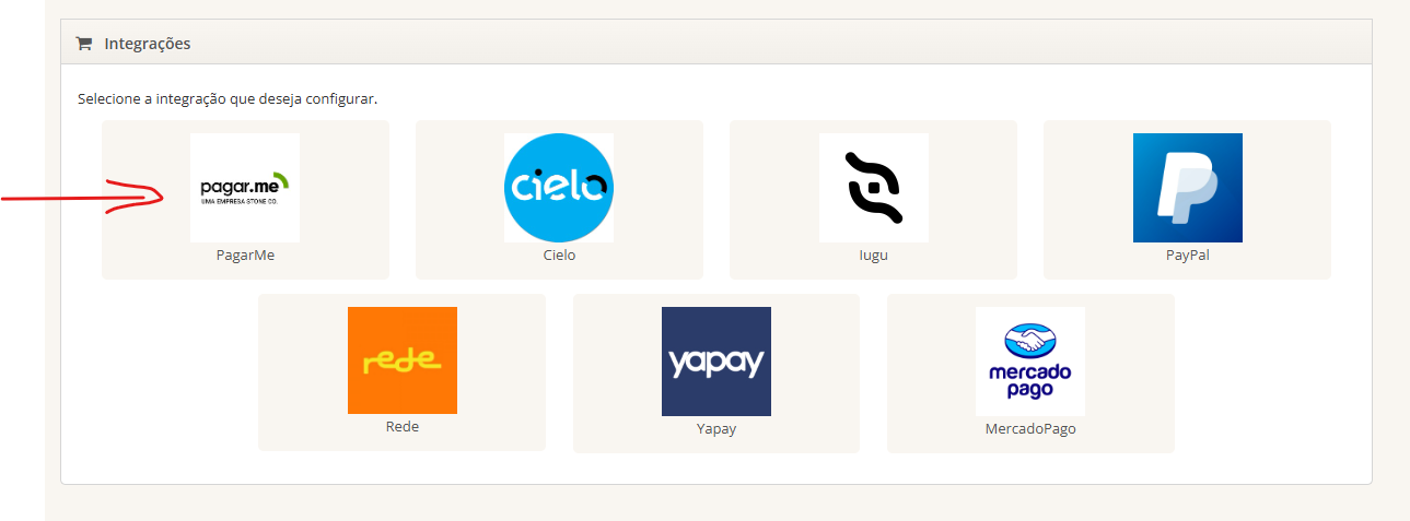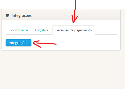 Clique na aba "Gateway de pagamento" e depois no botão "integrações"