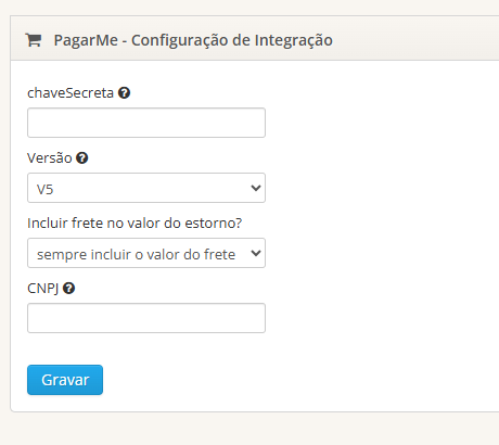 Preencha o campo chave secreta com a chave gerada no PagarMe.
